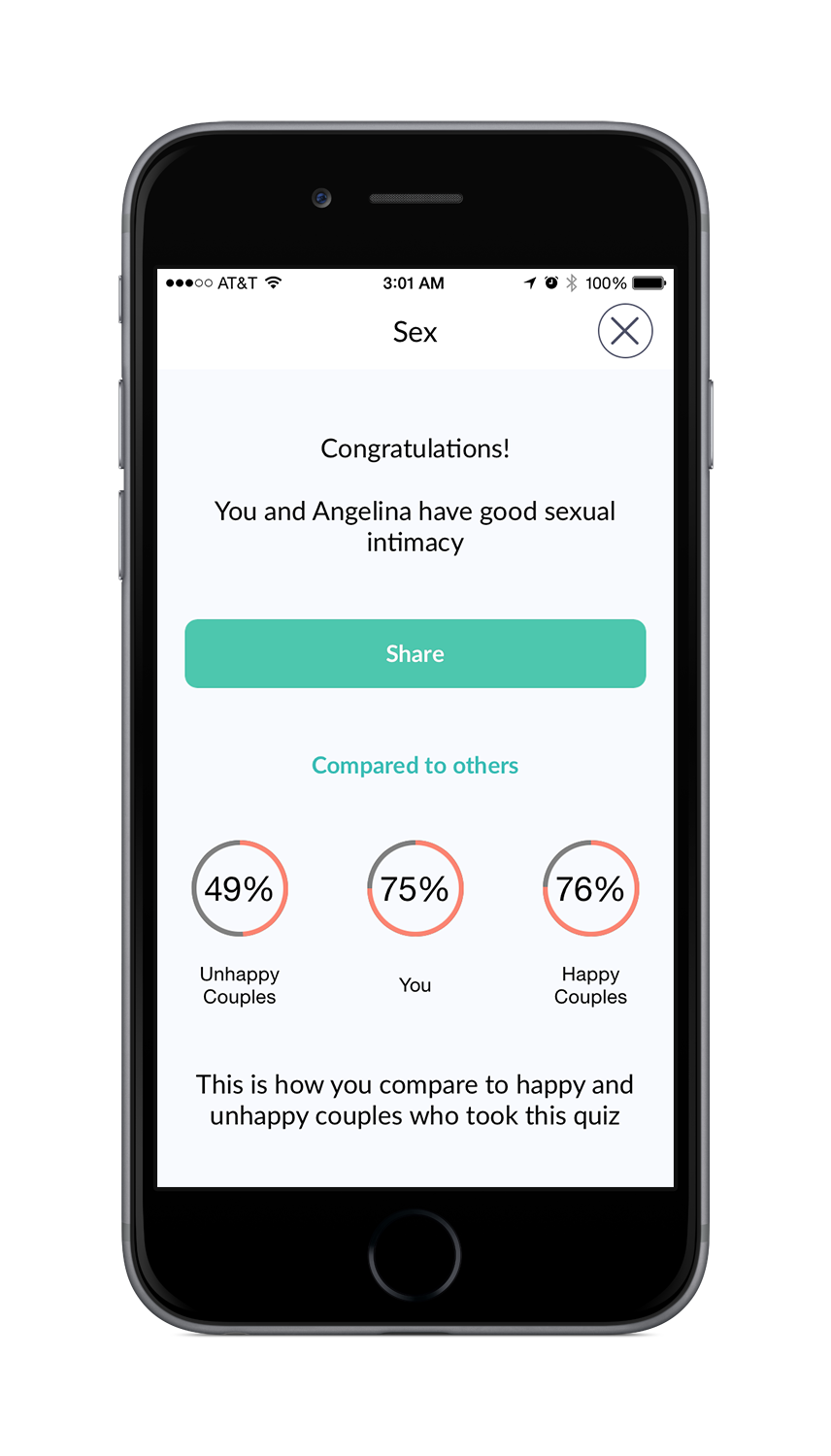 I don't think your app description/tagline should be so binary. This seems more like an app to understand each other, rather than something that works as a deciding factor for whether you should get married or not.
