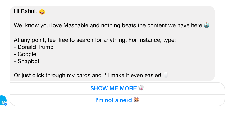 Interact, search and follow Mashable News on Messenger