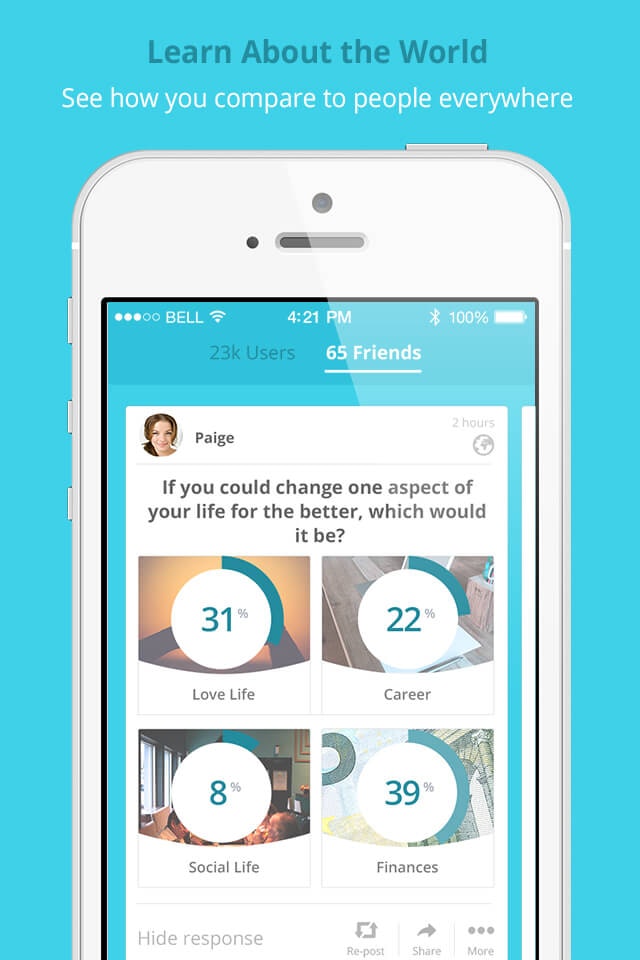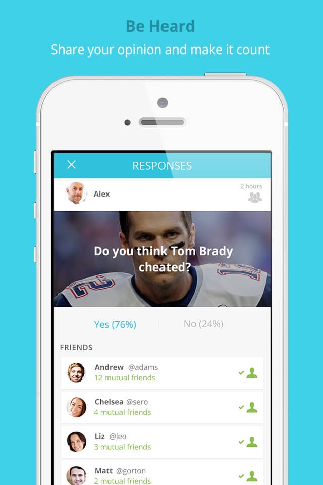 I've known Ben since the early days of Maslow and it's awesome to see the team launch it to the world. It's kind of like Twitter polls crossed with Tinder. Fun, fast, easy way to ask questions and get answers, or just see what the world thinks about a variety of issues. Excited to see what people do with it!
