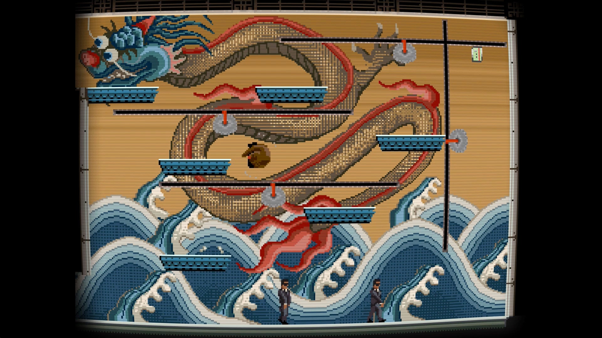 Lovin' the 8-bit cut-scene aesthetic. The difficulty seems seems very modern though -- Spelunky x3. CRT bulge is a nice touch.