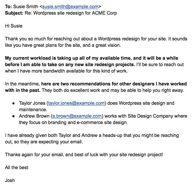 Helping freelancers level-up their e-mail game is sure to keep clients happy, and I'm with Ashley in that I've used the "turning down work" template to make MYSELF happy. But, I have a few clients who could stand to be better e-mail communicators, themselves. Would MBE be an appropriate resource for me to recommend to my own clients?