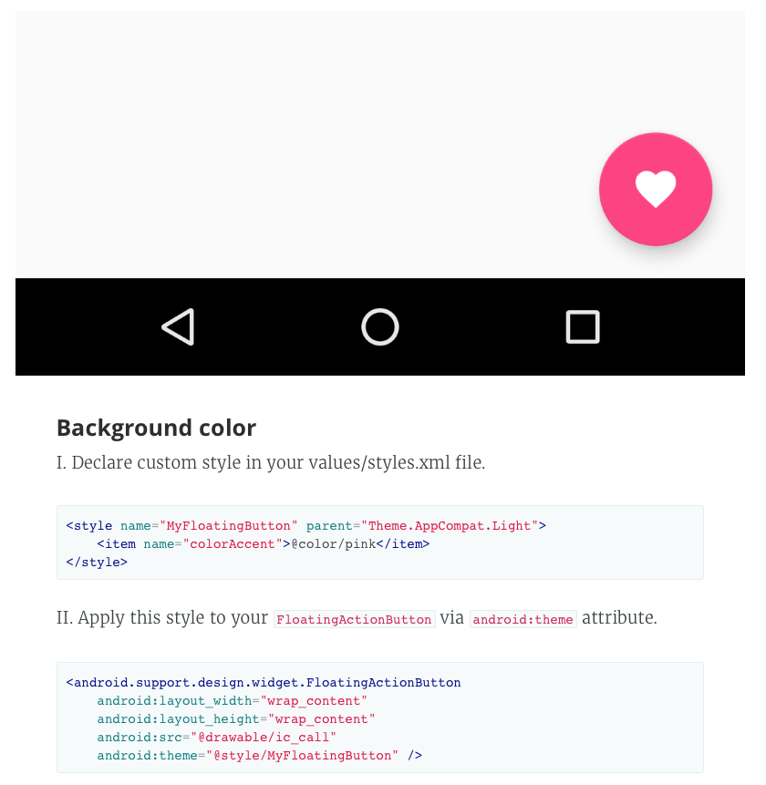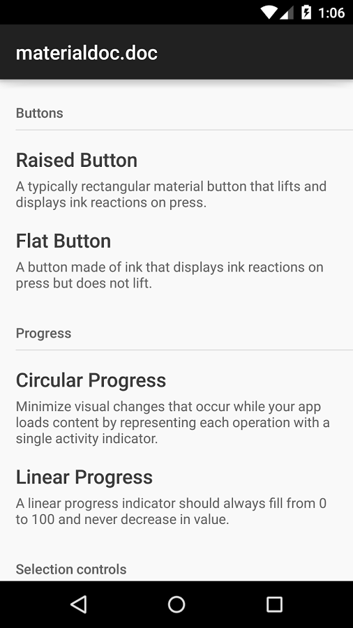 Material Design development documentation with examples