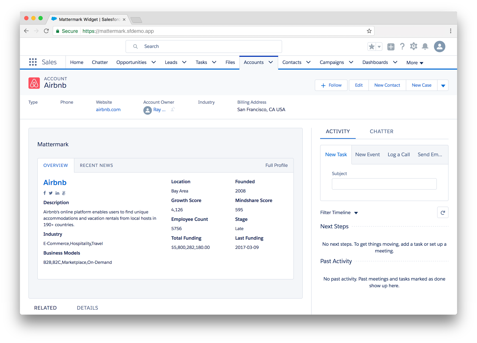 Wooooo hoo! Mattermark for Salesforce AppExchange is now available, bringing lead enrichment with Mattermark’s unique data set of growth signals to millions of sales professionals using Salesforce to conduct business every day. We've had a Salesforce API integration for a few years now, but this is so much better is simple onboarding and installation and a t… See more