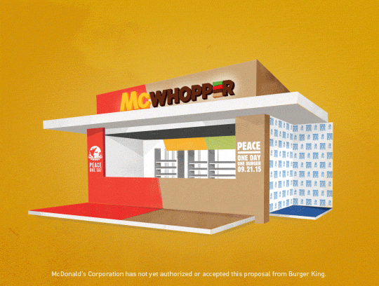 I personally think this is a really nice proposal from Burger King to McDonalds for the Peace One Day 2015 for them to end the so called "Burger War" at least on September 21.