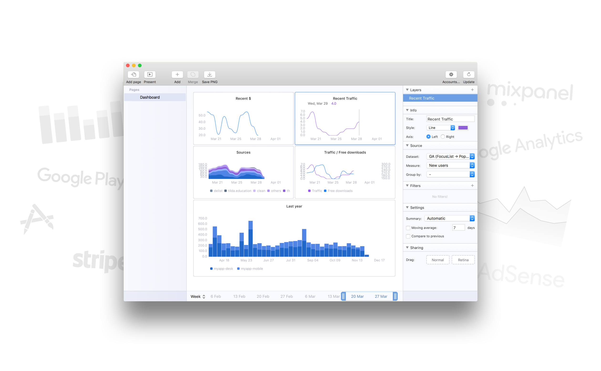 We just wanted an app where it would be *easy* to do things with data. Like checking website traffic from ads in December, or comparing DAU in Q4.2016 vs Q1.2017.