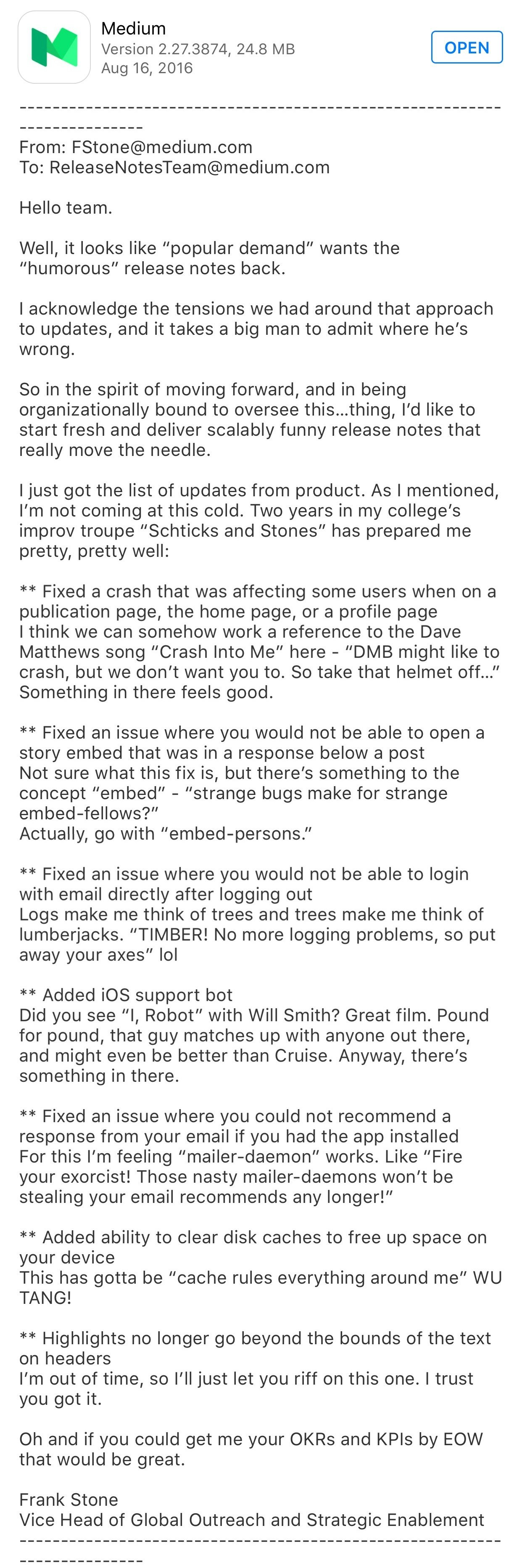 I don't know who FStone@medium.com is, but he dropped some interesting information in the latest Medium release notes: