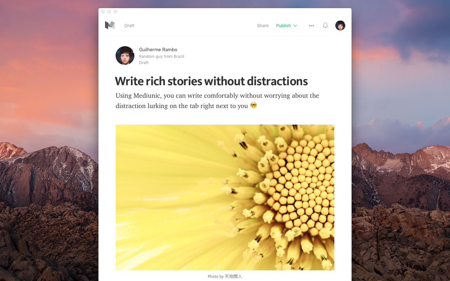 MediumDesk (https://www.producthunt.com/tech...) is very similar. But additionally, it comes with native menus & shortcuts for commonly used functions. And it is open source, free and supported for other OS.