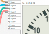 Meemoo is a media toy webapp, with modules that can be connected to do all kinds of image manipulation, animation, and GIF making. Programming by connecting dataflow wires between boxes, each with UI to show what is happening inside.
