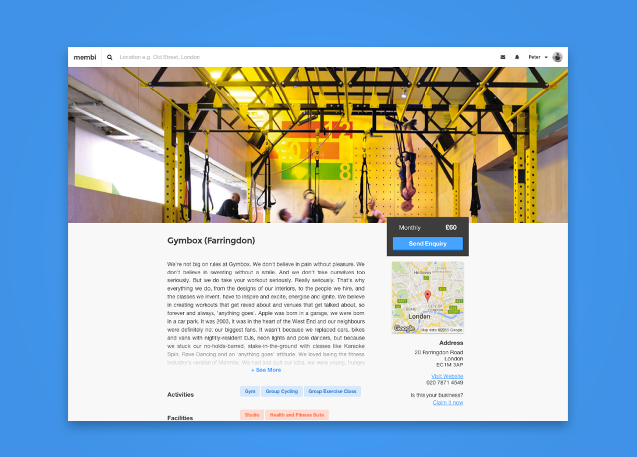 Membi is a platform that helps you to discover sports and fitness clubs near you. Whether you are looking for a new gym, tennis club or golf club, Membi helps you to find the best place for you, quickly and easily. You can filter by location, price, facilities and more.