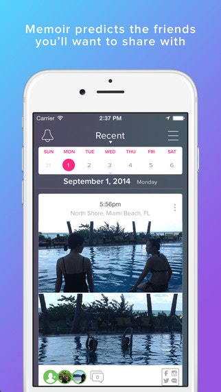 Hey I'm the cofounder of Memoir, we're really excited about the new predictive photo sharing functionality we're implementing on IOS8. You can read more about it here: http://blog.yourmemoir.com/post/...