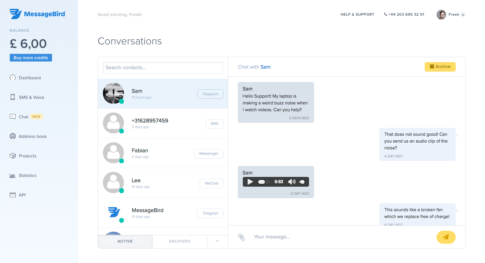 MessageBird is an API for sending SMS, Voice & Chat messages. I'm happy to announce our newest product: Chat API.