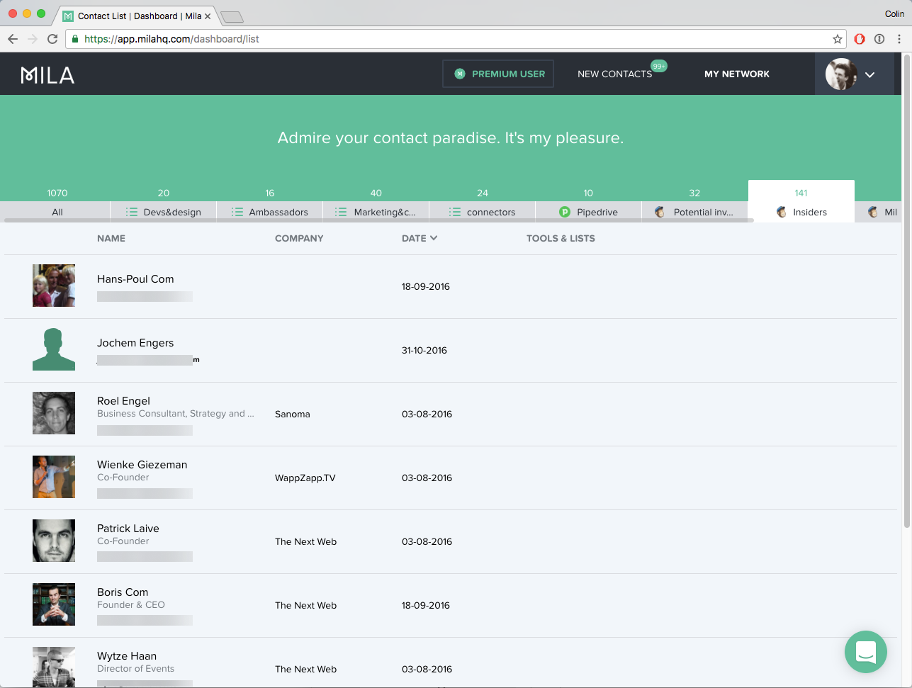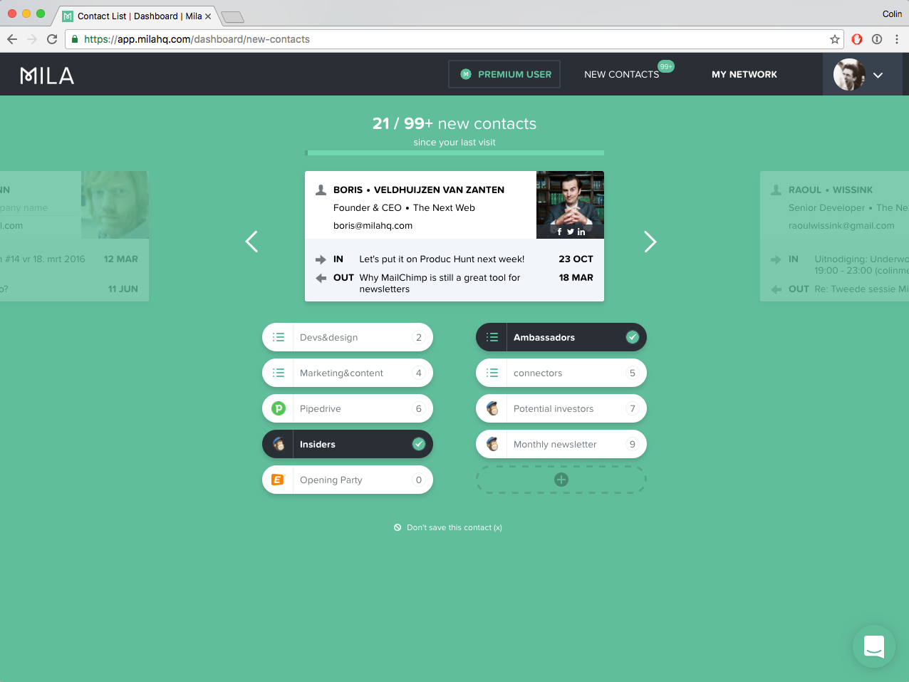 Mila has been in Beta for a while but now finally live! Great tool by @colinellis5 and TNW's @Boris - Save every interesting new contact to your own address book or share them with your team and tools!