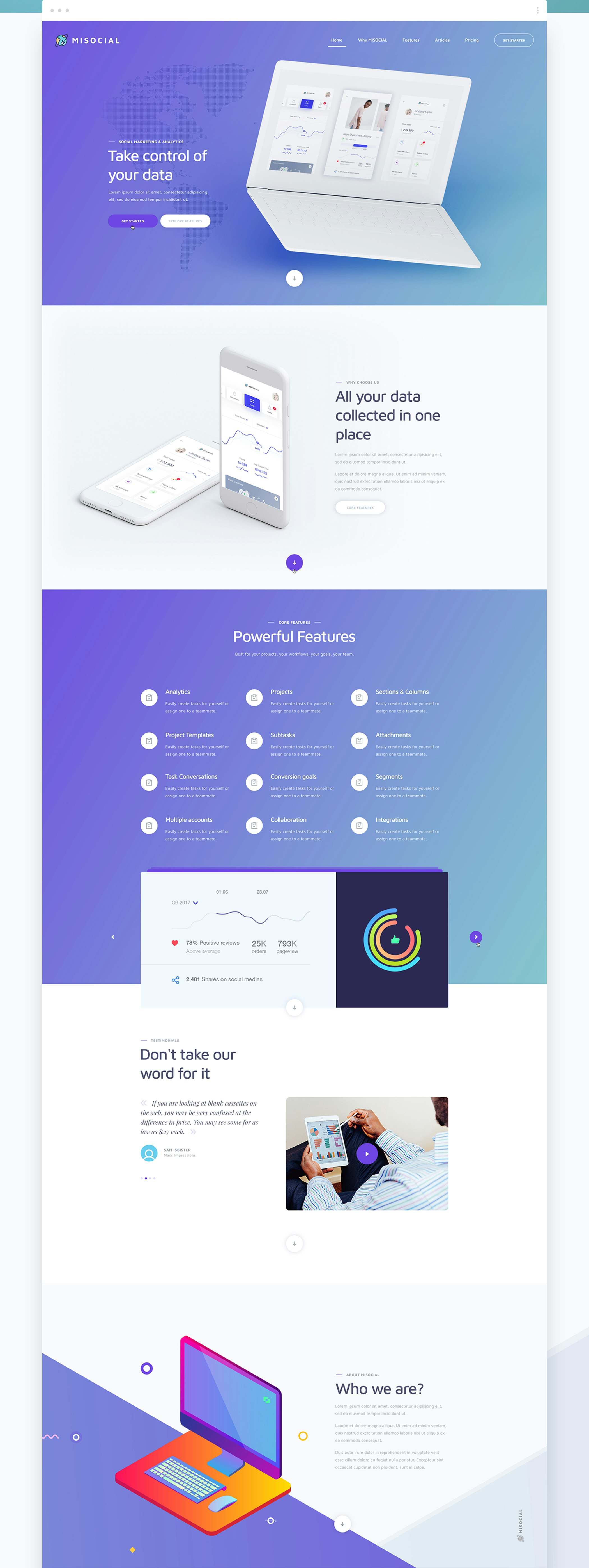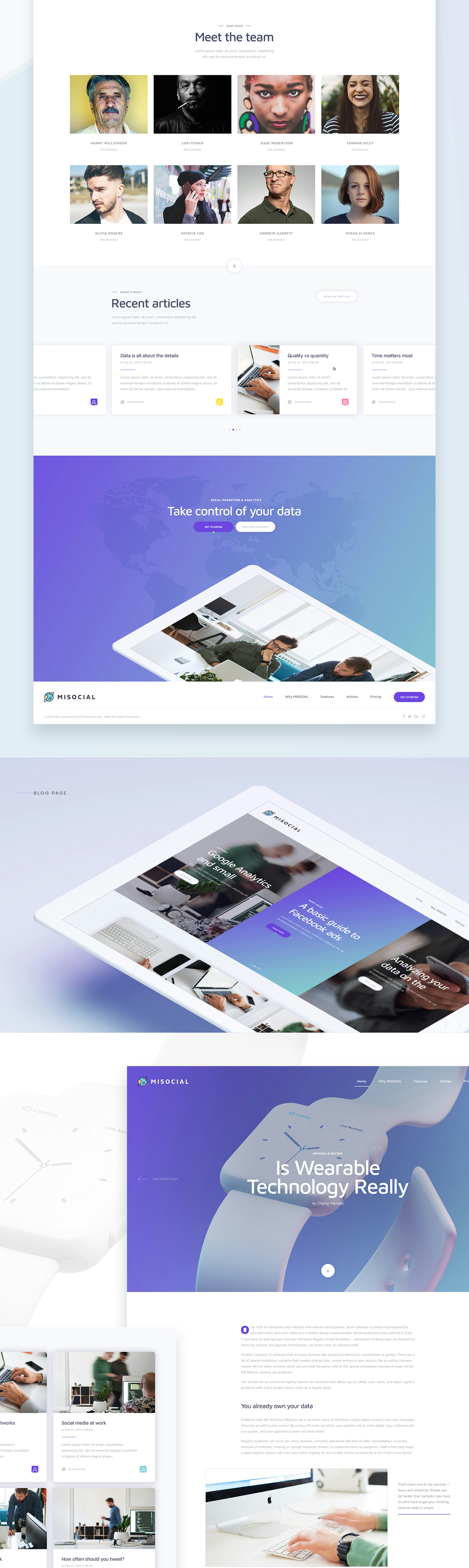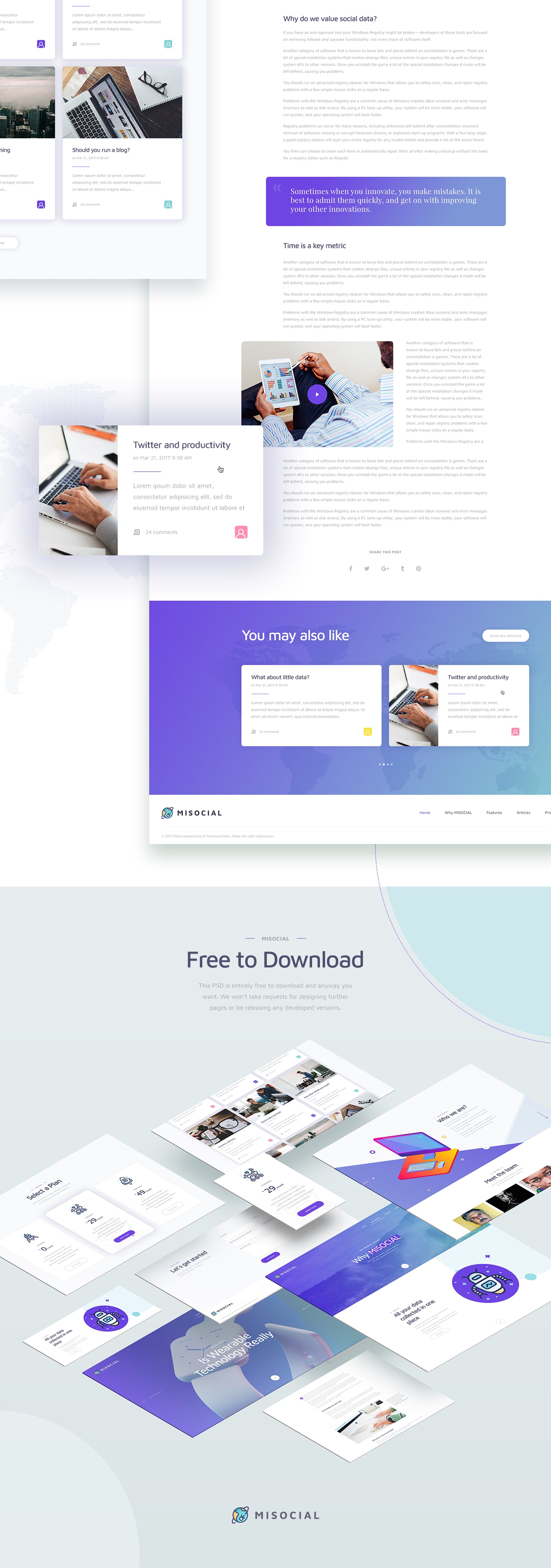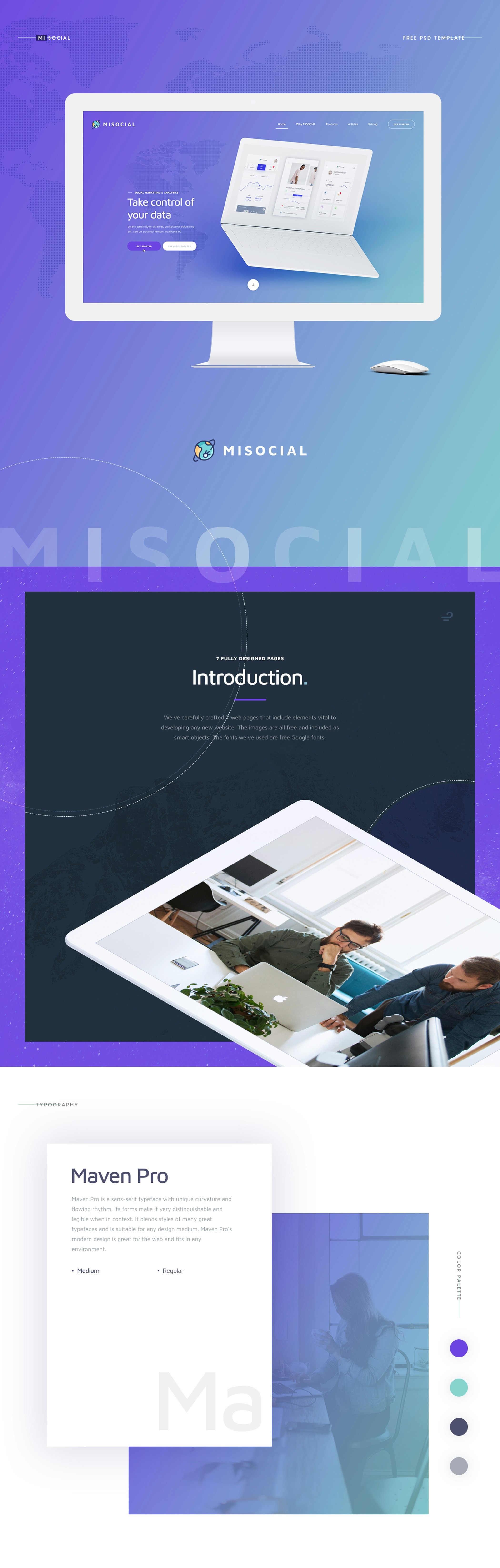 We've carefully crafted 7 web pages that include elements vital to developing any new website. The images are all free and included as smart objects. The fonts we've used are free Google fonts. Feel free to download and use MIsocial if you like.
