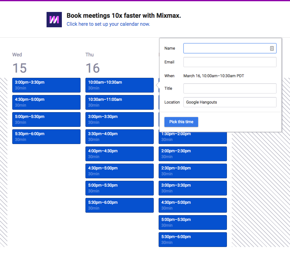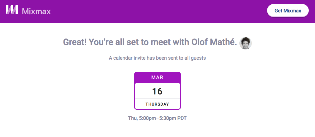 Thank @hnshah - Excited to share the latest addition to our Mixmax communications suite - Mixmax Calendar. Today, we spend too much time scheduling. Our new calendar lets you book meetings faster by sharing your custom link where prospects can choose the best time for them. The link is is perfect to put in your signature or share on social media!