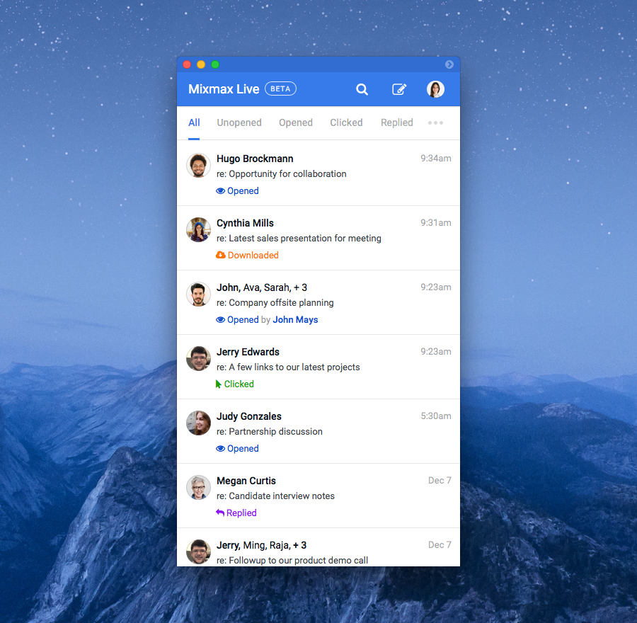 Mixmax “Live” for Mac shows you a feed of every action someone takes on your communications, letting you follow up in real time, all in one place. It’s slim, unobtrusive, and is the perfect companion to Gmail… See more