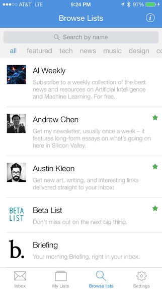 I absolutely love this app. I follow all my favourite newsletters in this -- it's fast, clean and an ideal way to catch up with all those great email publications out there.