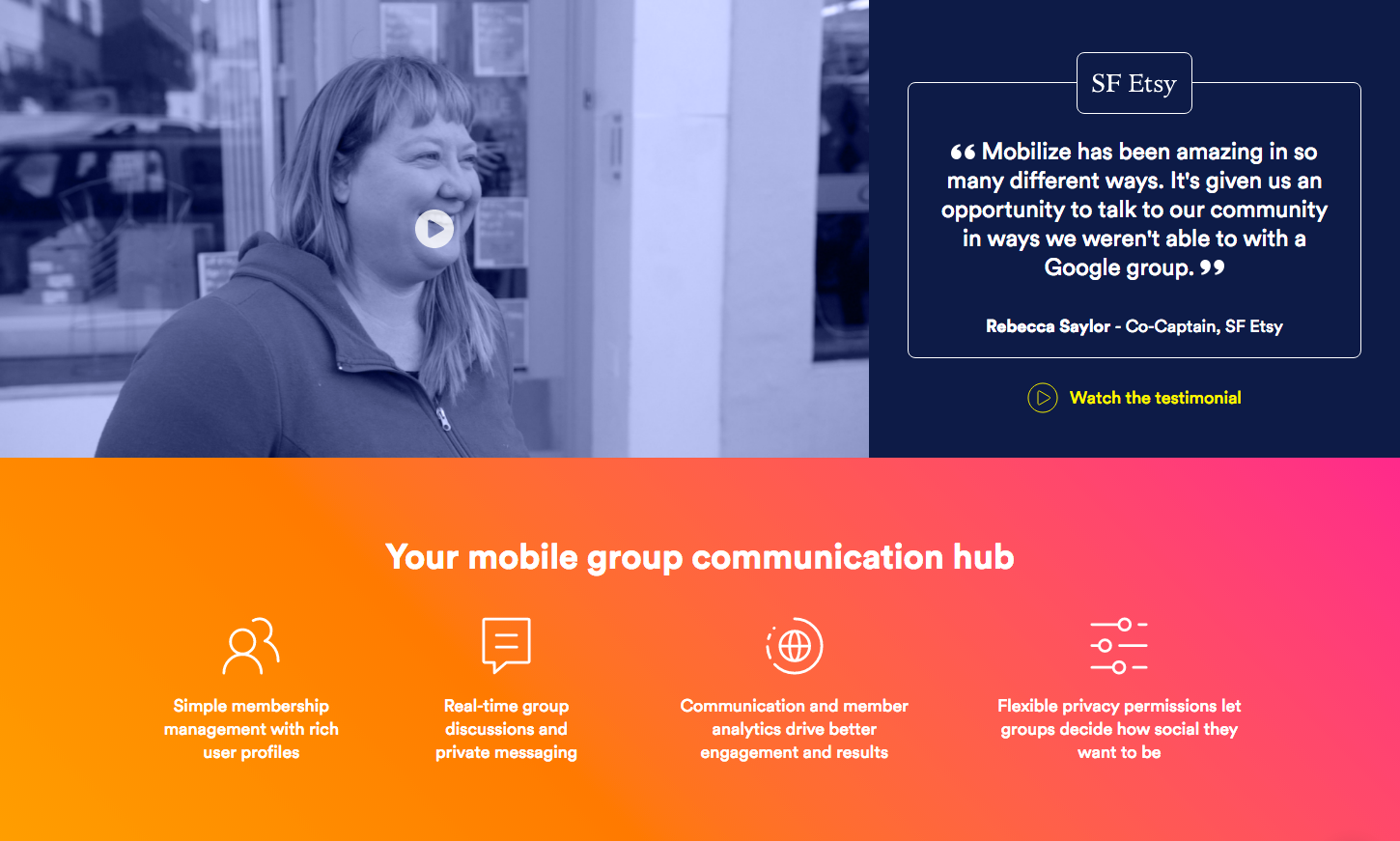 Happy member of a Mobilize community for Gaming Insiders. I love the approach Mobilize took to integrate into my workflow (email) rather than forcing me to go to a web/app experience unless I want to. The ability to opt into what I want, and out of what I don't is also super strong. Love it!