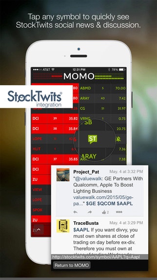 Thank you for the PH submission! It's awesome to find others that find MOMO valuable. This is actually the second time I tried building a mobile stock app. Back in 2011 I had "RT Stock Alert" on the drawing board, but a variety of hurdles shelved the idea until I revisited it again last year.