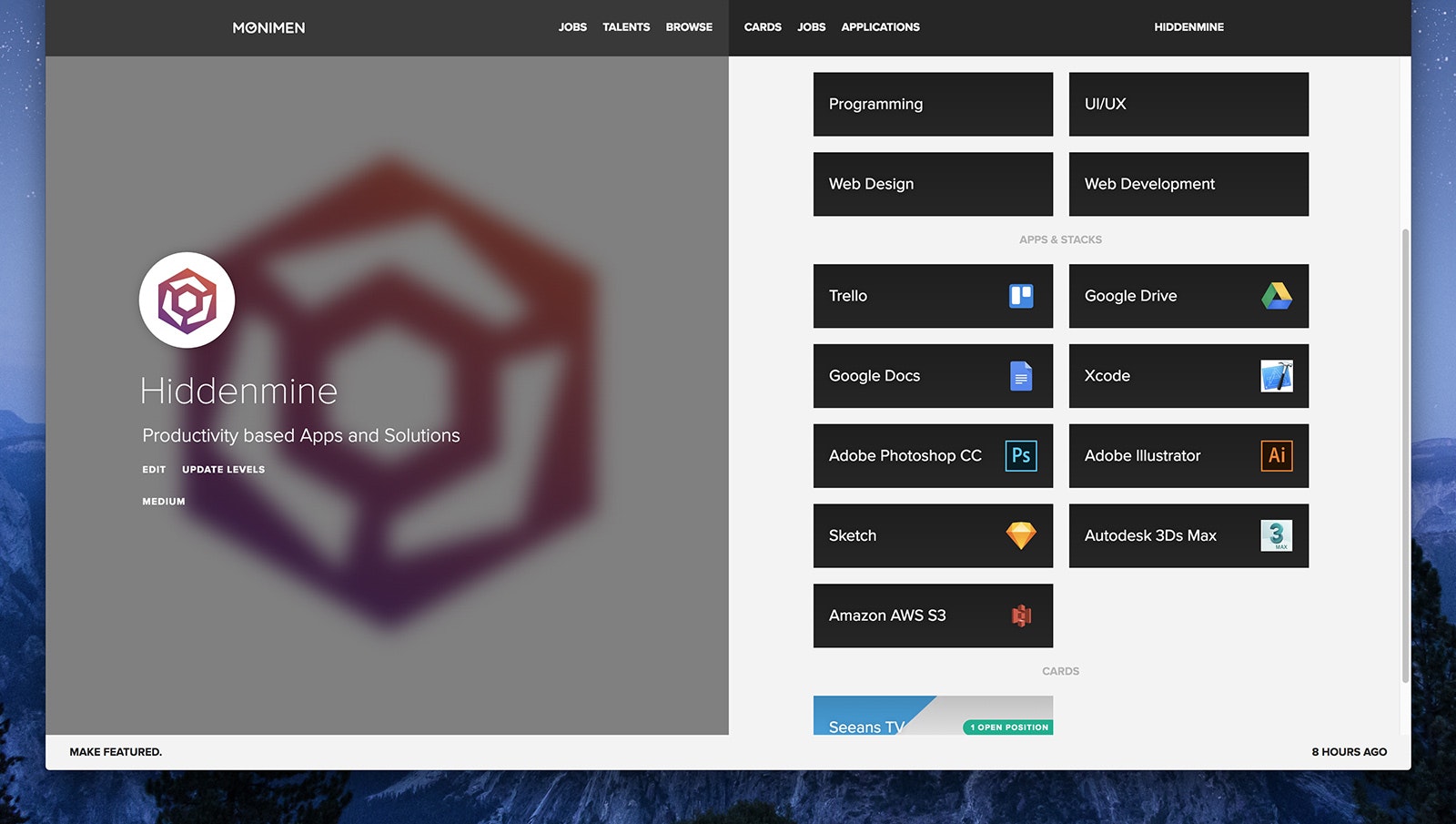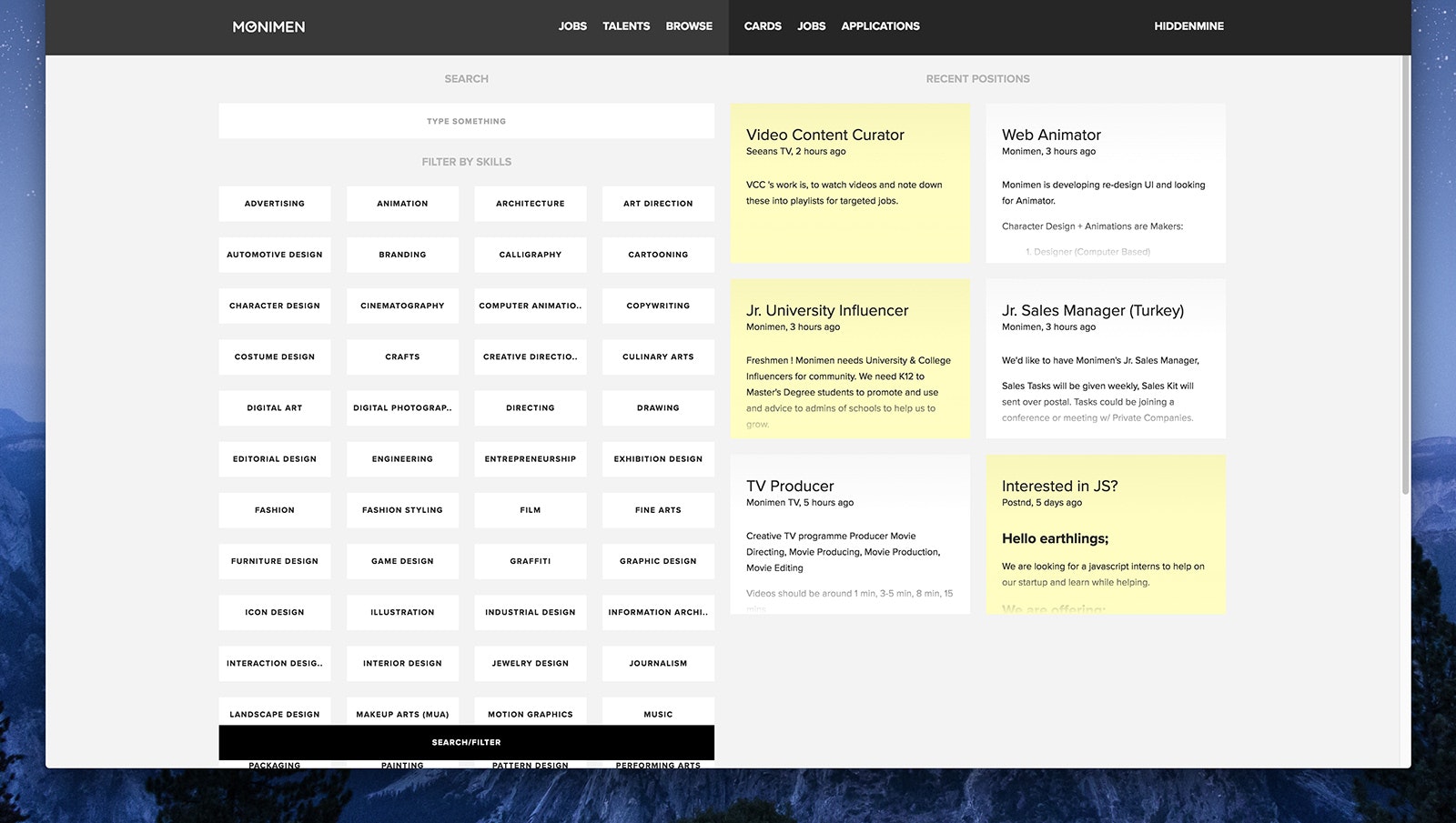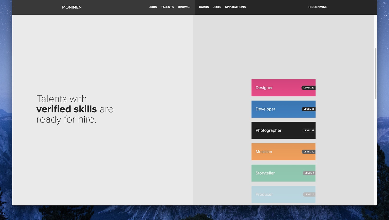 Monimen is a Maker's Community to Build Project from Ideas with Talented People. We've an unique Scoring System to qualify people based on their public portfolios.