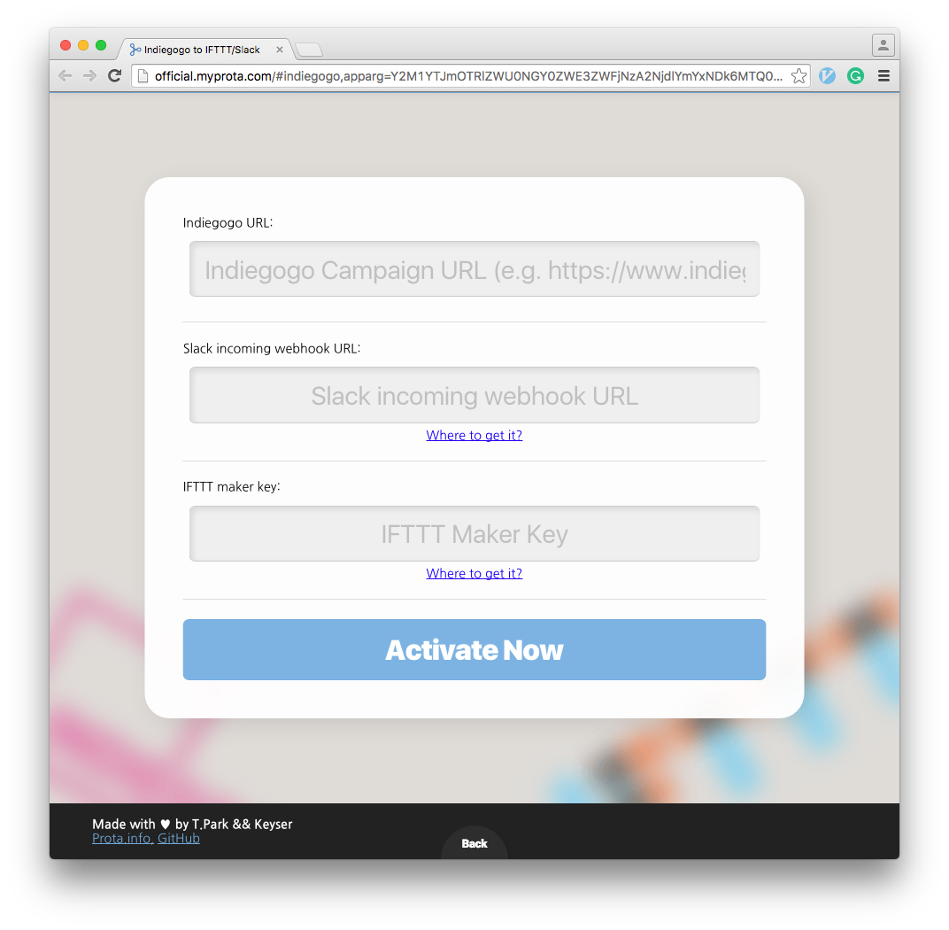 About a week ago, I made a small script for monitoring any Indiegogo campaign and integrating with IFTTT and Slack (https://www.producthunt.com/tech...). I'm opening a web service that does the same without executing any python scripts on your computer (no git clone, either). It should be a lot easier now😀