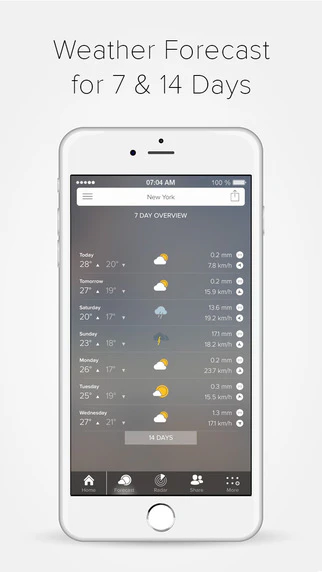 * Weather Forecast for 7 & 14 days