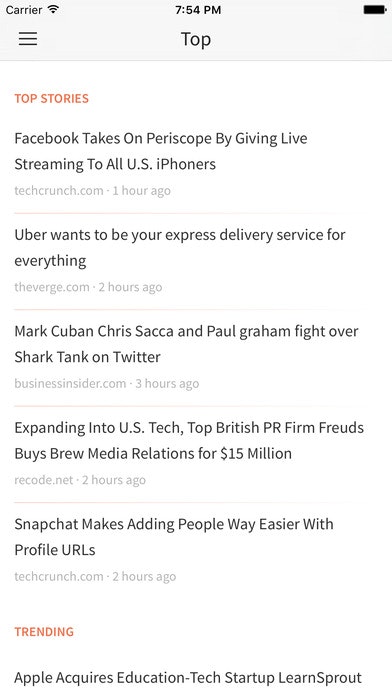 • Trending stories at the top of your feed