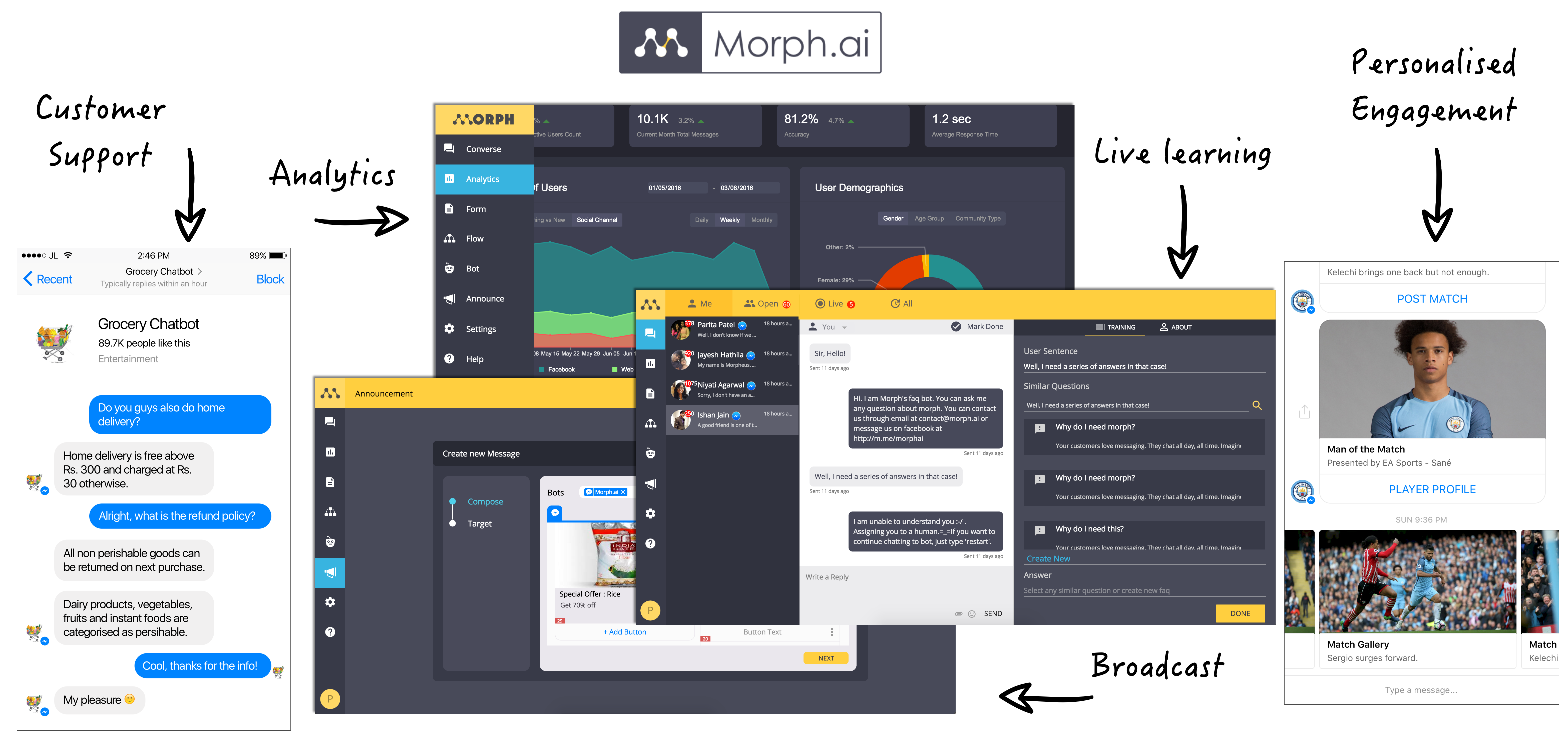 Good work on the onboarding. It is quite in-depth. There's definitely lots of feature packed in here as well with support for many channels including iOS and Android, as well as comprehensive analytics. I also appreciate how you packaged some bot training features as general concepts that people understand more easily like forms and FAQs. Great job!