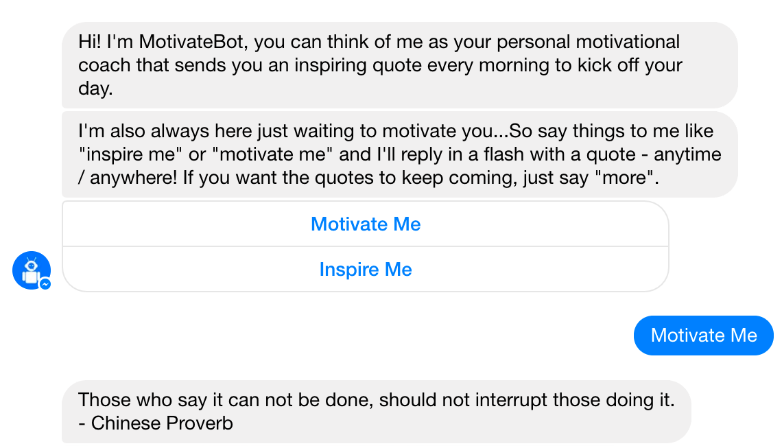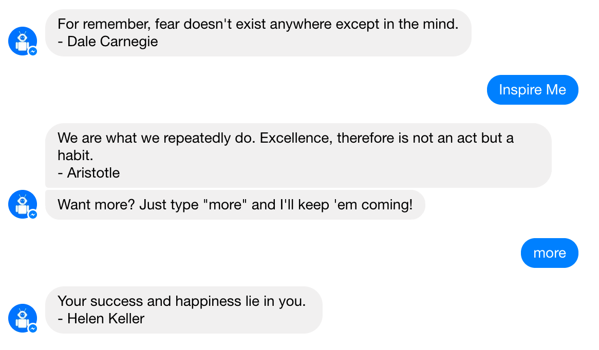 Messenger bot sending inspiring quotes daily and on-demand