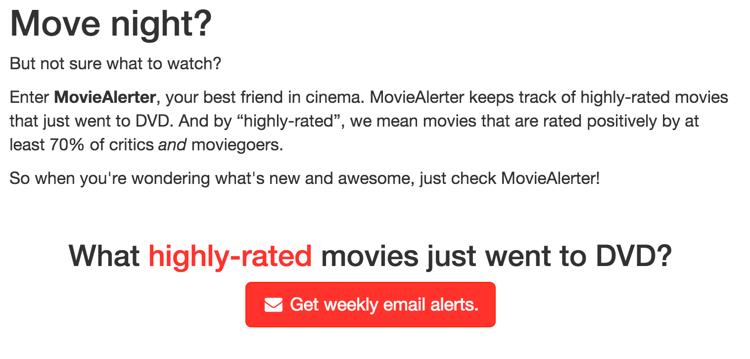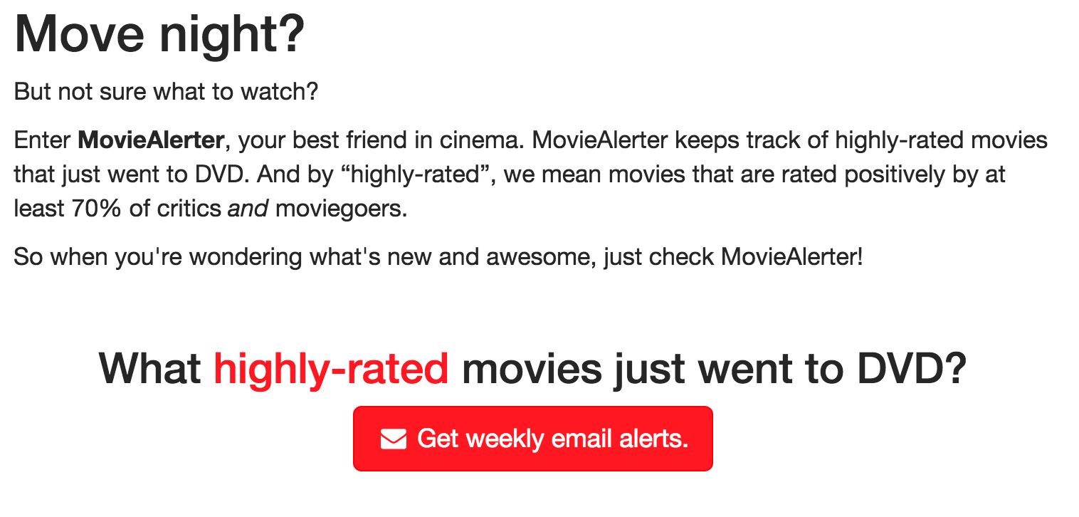 Maker here. I built this because I was tired of not having an easy way to just pick a recently-released highly-rated movie to watch. Feel free to ask questions / suggest features :)
