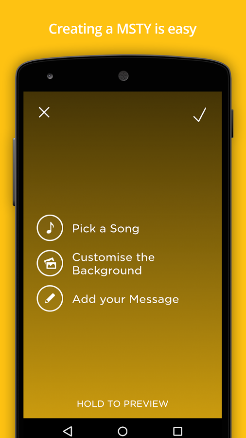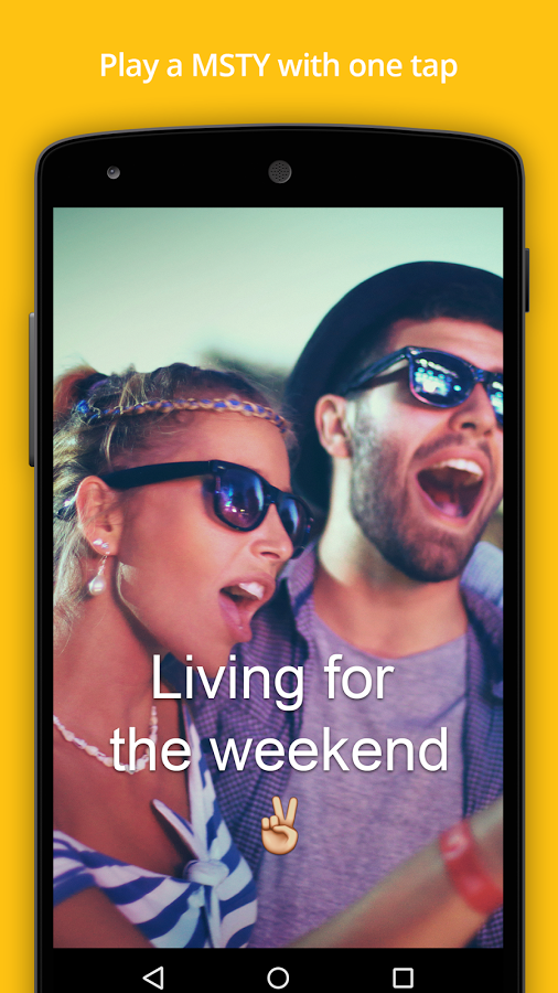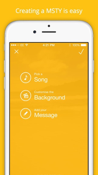 MSTY (My Song To You) is music messaging: a brand new way to connect with friends. Creating a MSTY is as simple as choosing a song, framing it with a photo & adding your message. When you're done, share privately with friends.… See more