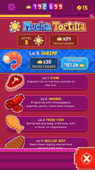 It's interesting to see the rise of these types of games with a single tap/swipe mechanic, intermittent reward and a passive progression system that takes advantage of push notifications. I get hooked easily on these types of games and I've been makin' tacos like a madman.