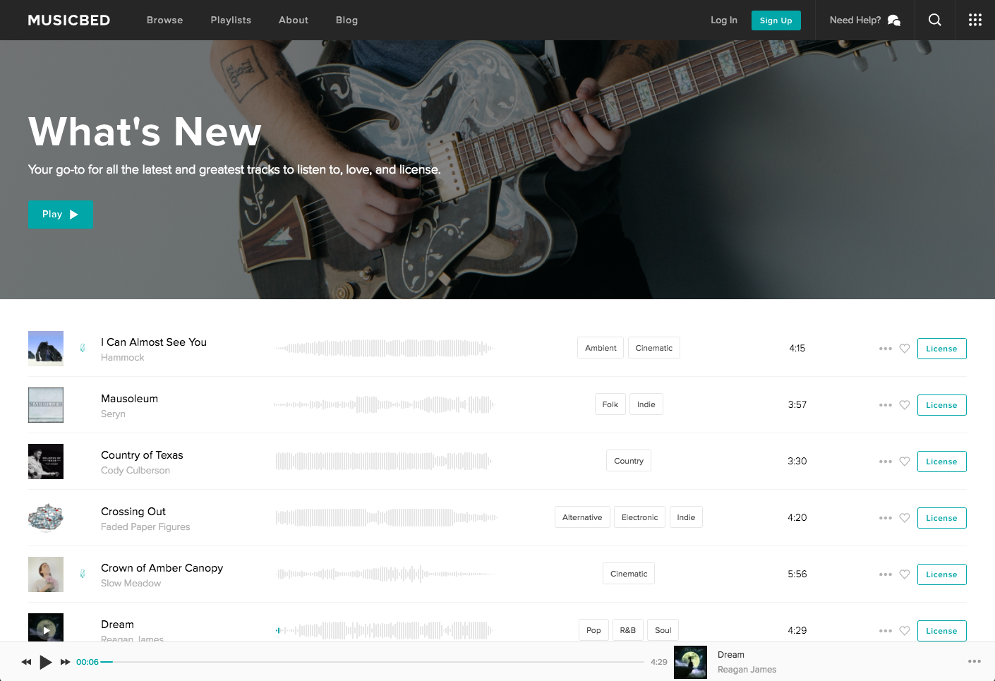It's great to see Music Bed on product hunt. Their website has great music that is tough to find anywhere else and they also support the film and music community which is terrific.