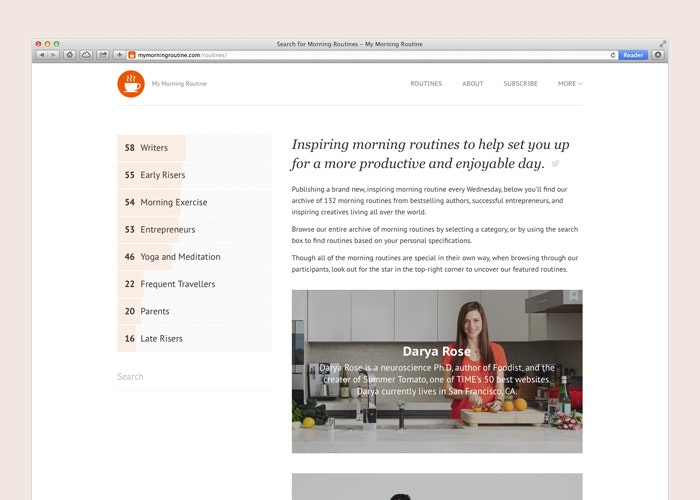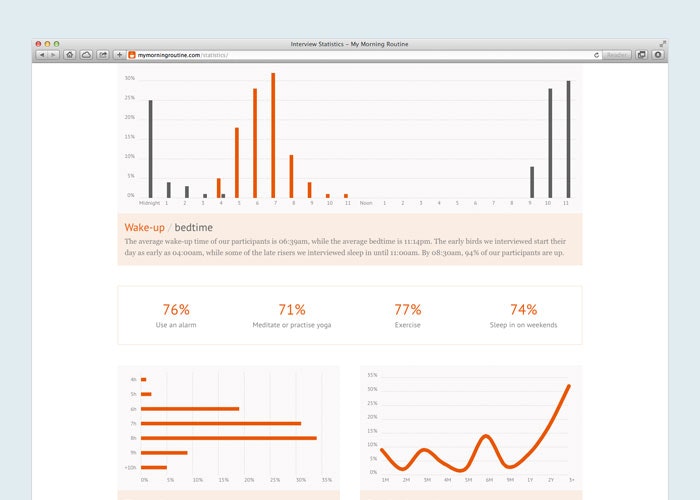 I started My Morning Routine with @benjaminspall back in December 2012. In the (almost) two years since launching My Morning Routine we’ve published 99 routines from inspiring individuals living all over the world, some of whom you may know, such as Cat Noone (@imcatnoone) and Paul Jarvis (@pjrvs).