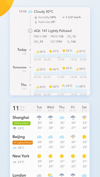 MyWeather is a beautifully crafted weather app providing you with realtime temperature, AQI, 10-day forecast and accurate time-trend. Powerful weather forecast, covering 50000+ cities.