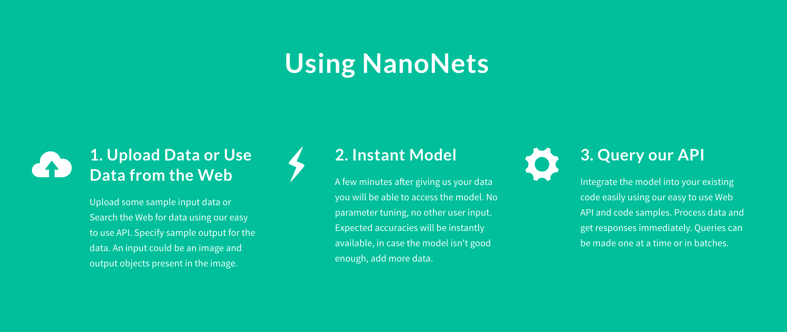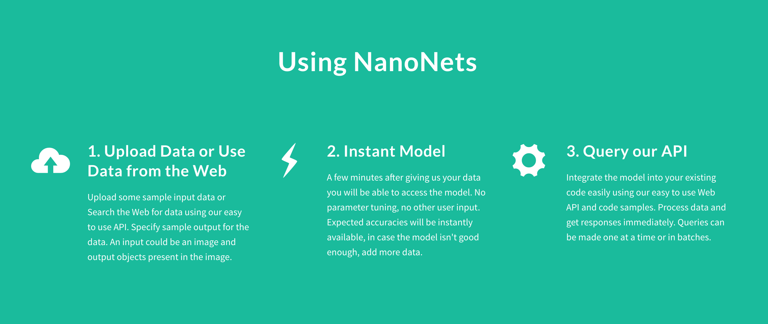 The slogan is quite generic. Most ML models are tailored to specific use cases in order to work. The website then is quite specific. I would think it would make sense to change the slogan. At the end, for example MS's cognitive services fulfill a similar use case API call to an ML algorithm returning a JSON of parameters without being overly general in it's … See more
