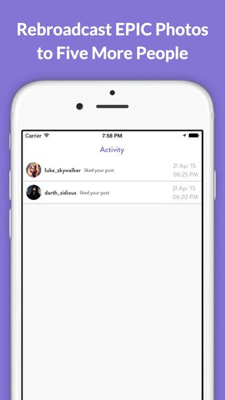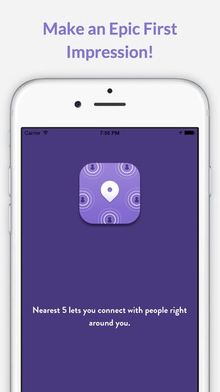 Nearest5 is the fresh new way to communicate and make new friends. Share photos with the five nearest people in the app. You can also rebroadcast photos to another 5 nearest people. Then chat with those that have engaged with your photos.