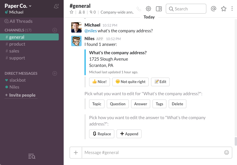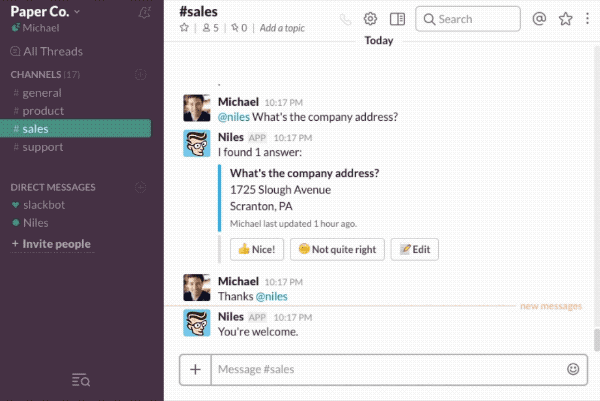 We built Niles to help teams who use Slack to easily share knowledge within the company. I’ve personally felt the pain of creating wikis that nobody used and struggling to find information across multiple tools, and wanted something better.