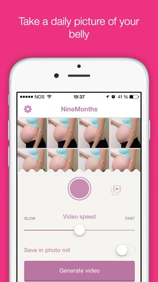 Take a photo of you everyday during your pregnancy. Press the « play » button. Share your happiness.