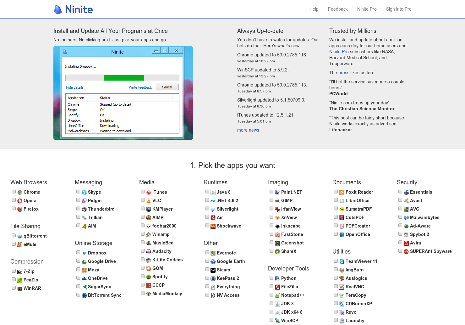 Ninite is a fantastic free service that I've being using for years and highly recommend for anyone who's setting up a new PC. My only wish is that they would expand their software catalog; it's barely changed in the 10 years that I've been using it.