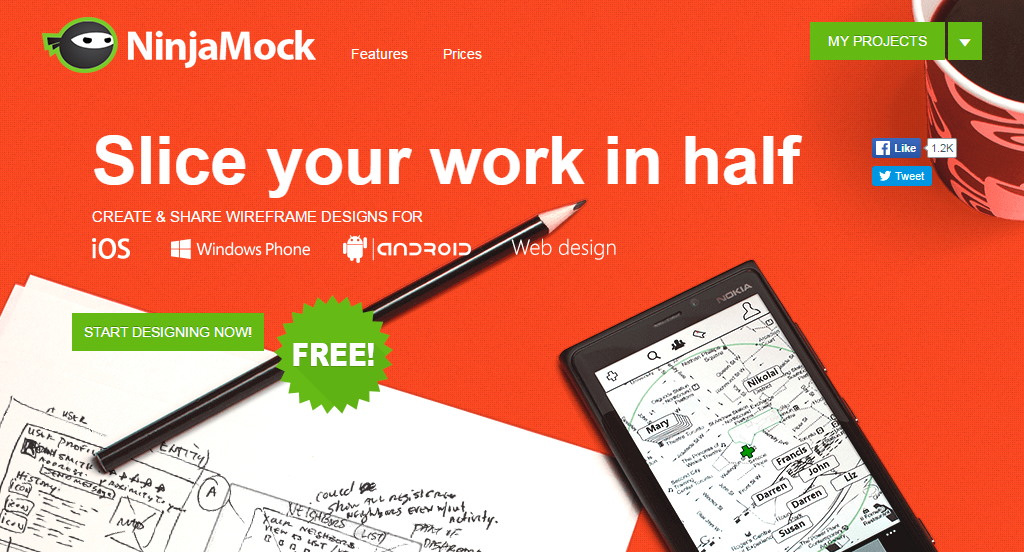 When you’ve got a good idea and want to share it with someone, it’s nice to have an easy-to-use tool that lets you mockup your idea and share it with others. We made NinjaMock with that purpose. To let our users sketch their idea fast with no need of special drawing skills or design skills.