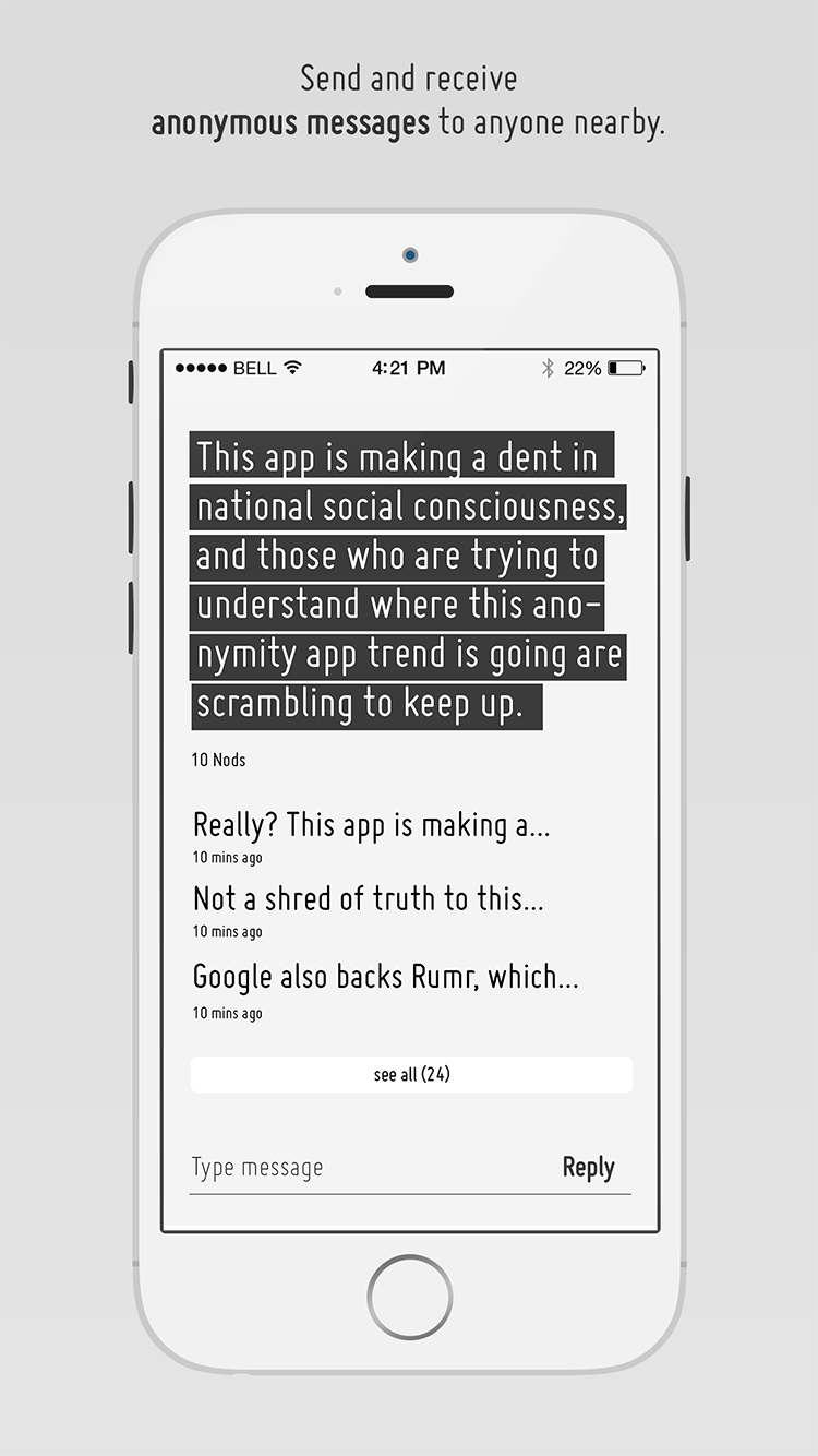 Nod - is an anonymous proximity messenger.