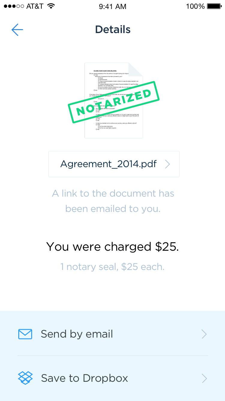 Notarize, the first on-demand remote electronic notary service, allows anyone to legally notarize a document from their iPhone or Desktop 24 hours per day, 7 days per week. Notarize is valid nationally and connects customers with licensed Virginia electronic notaries by live video call. Simply download the app, prove your identity, fill out your document, and sign before a live agent to have it notarized instantly.
