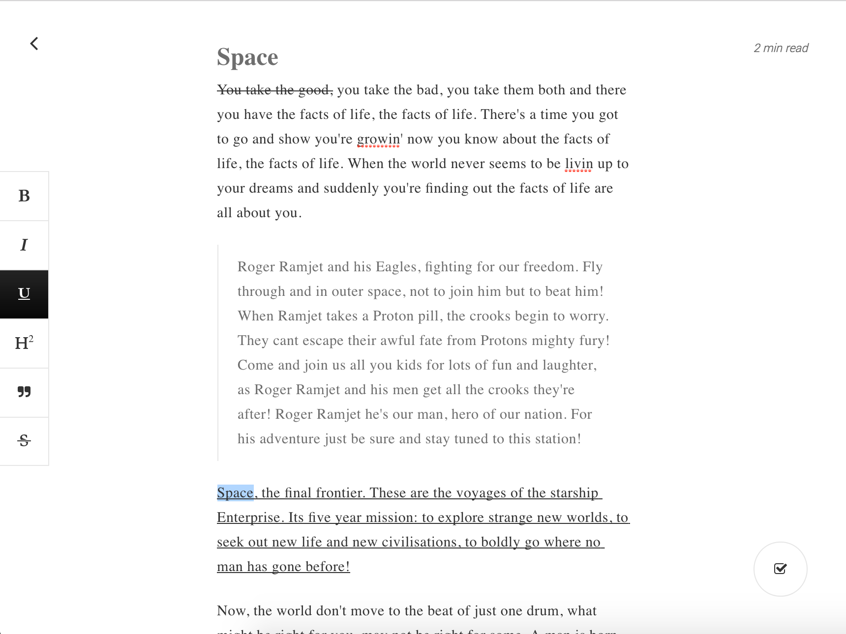 Nice work. I would start using this for sure if you had the ability to create bulleted/numbered lists.