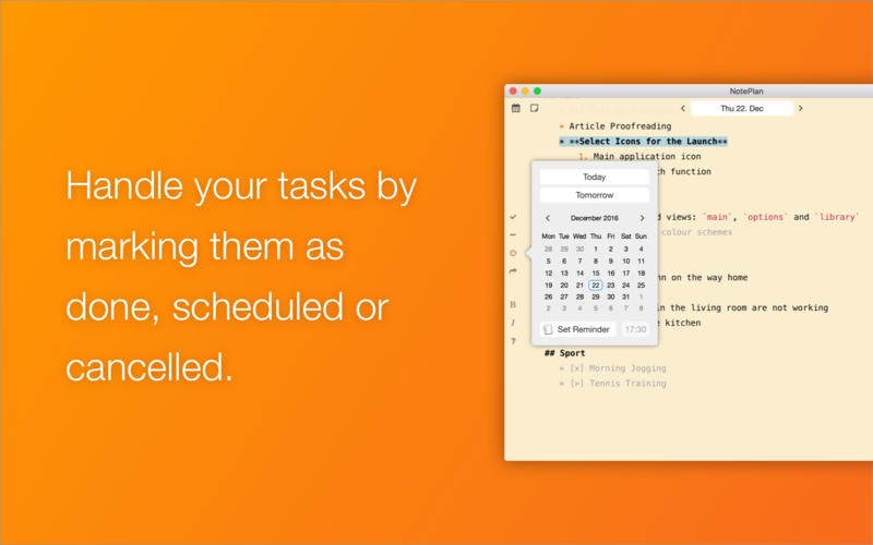 I have made this app as a sideproject, because I was used to pen and paper daily planning with my Moleskin calendars, but couldn't find anything awesome on macOS to digitize my workflow. I came across Markdown (https://daringfireball.net/proje...) and BulletJournal (http://bulletjournal.com) and loved it, so I dec… See more