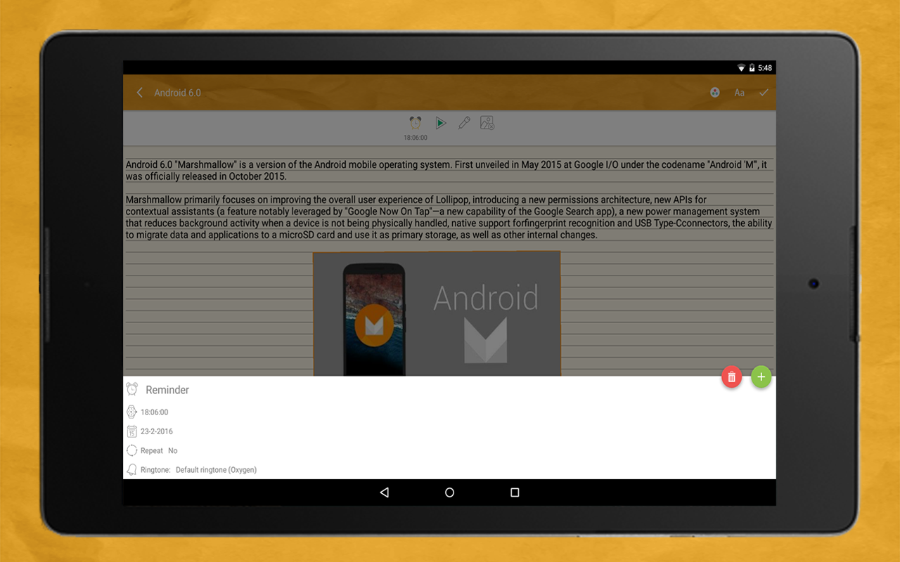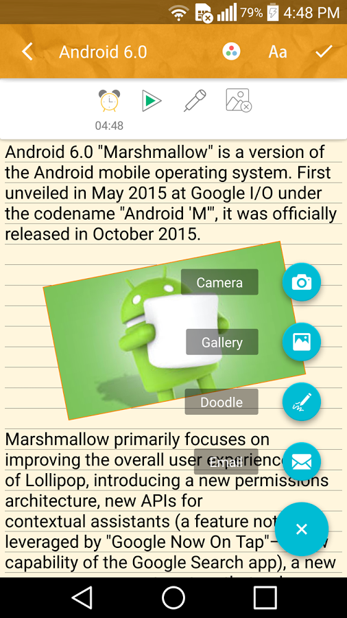 Notes Lock password-protects your secret notes and to-do lists with either a pass code, pin code or pattern. You can write note in different fonts and sizes, and can organize them as you wish. It also allows you to insert images and sounds into your Notes. And you can edit your note anytime with the Notes Editor function.