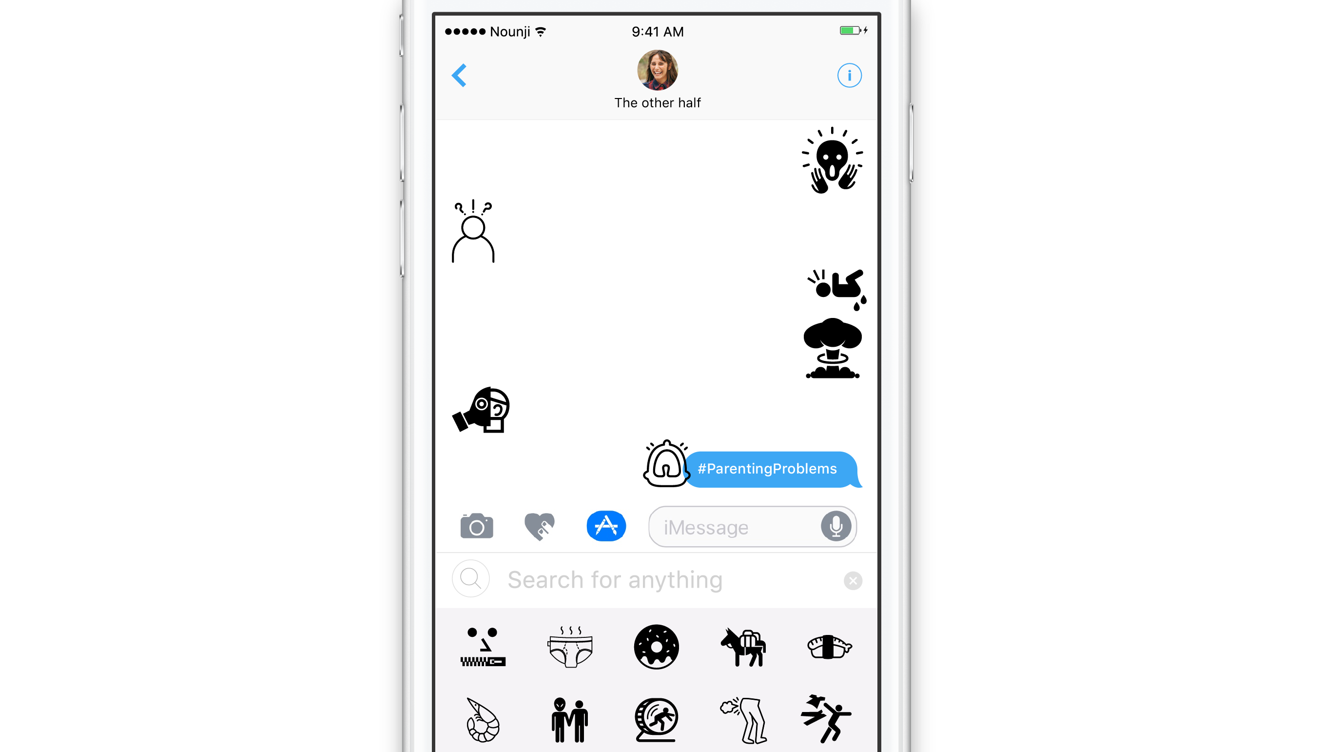Edward from Noun Project here, today we're thrilled to launch Nounji, our new iMessage App that brings the entire Noun Project catalog of over 500,000 icons straight into your iMessage conversations.