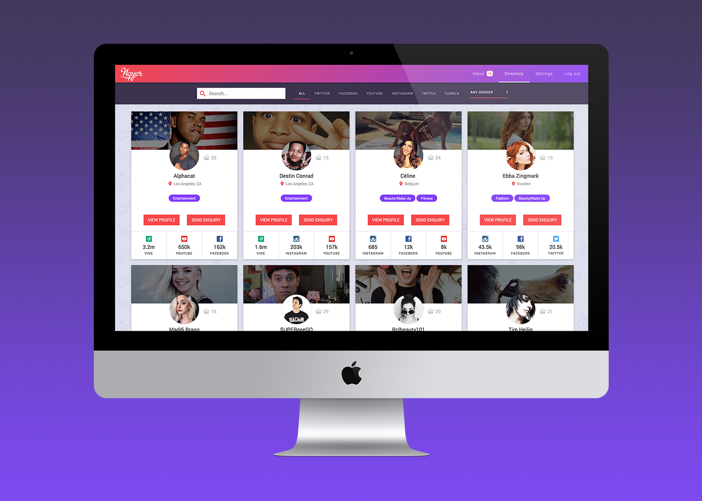 Influencer directory for collaboration opportunities