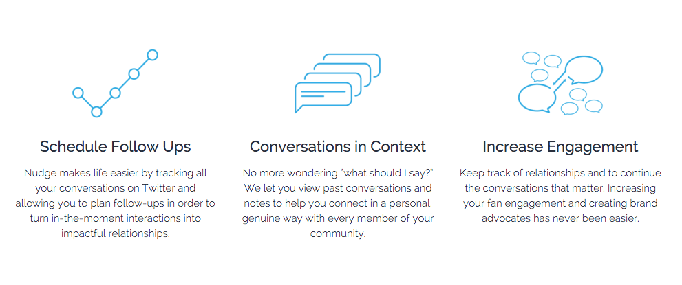 It's a tool for tracking all your conversations on Twitter and allowing you to plan follow-ups in order to turn interactions into meaningful relationships.
