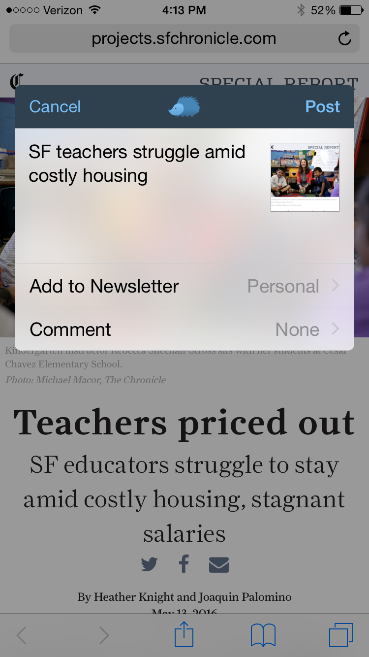 @abrams - interesting idea. Is there a way to promote stories from an iOS extension, e.g. "send to my newsletter" that would prompt you for commentary?