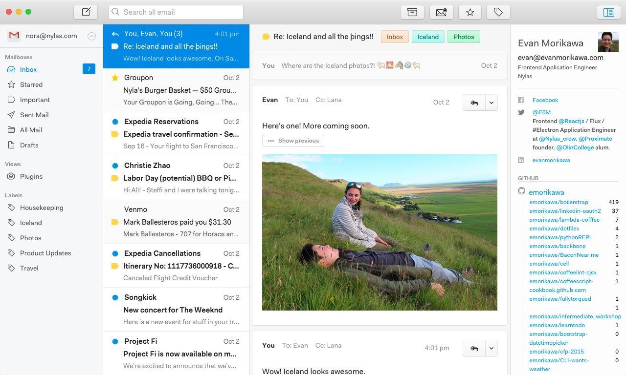Actually giving N1 a chance. Few bugs arose, some of them are critical for UX (for example, inability to add more then 1 account and mail archive not loading properly), but I hope this is the side-effect of launch and everything will become stable soon. I love the concept and this piece of software IMHO can potentially be the new Sparrow in terms of fresh an… See more